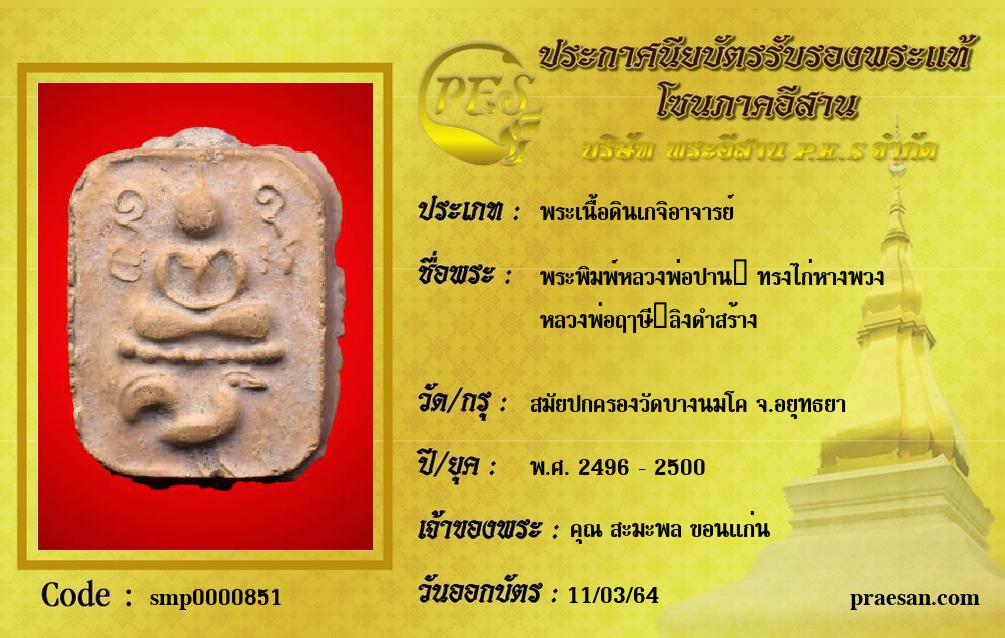 พระพิมพ์หลวงพ่อปาน ทรงไก่หางพวง หลวงพ่อฤๅษีลิงดำสร้าง