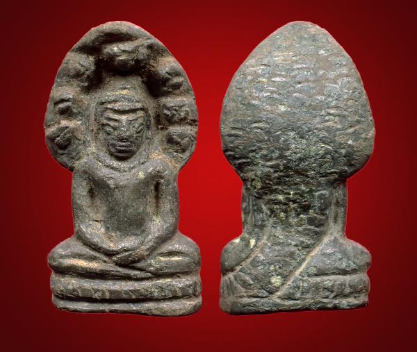 พระพุทธรูปปางนาคปรก เนื้อสำริด ขนาดห้อยคอ ศิลปะลพบุรี พุทธศตวรรษที่ ที่ 17 - 18 อายุ 800 - 900 ปี